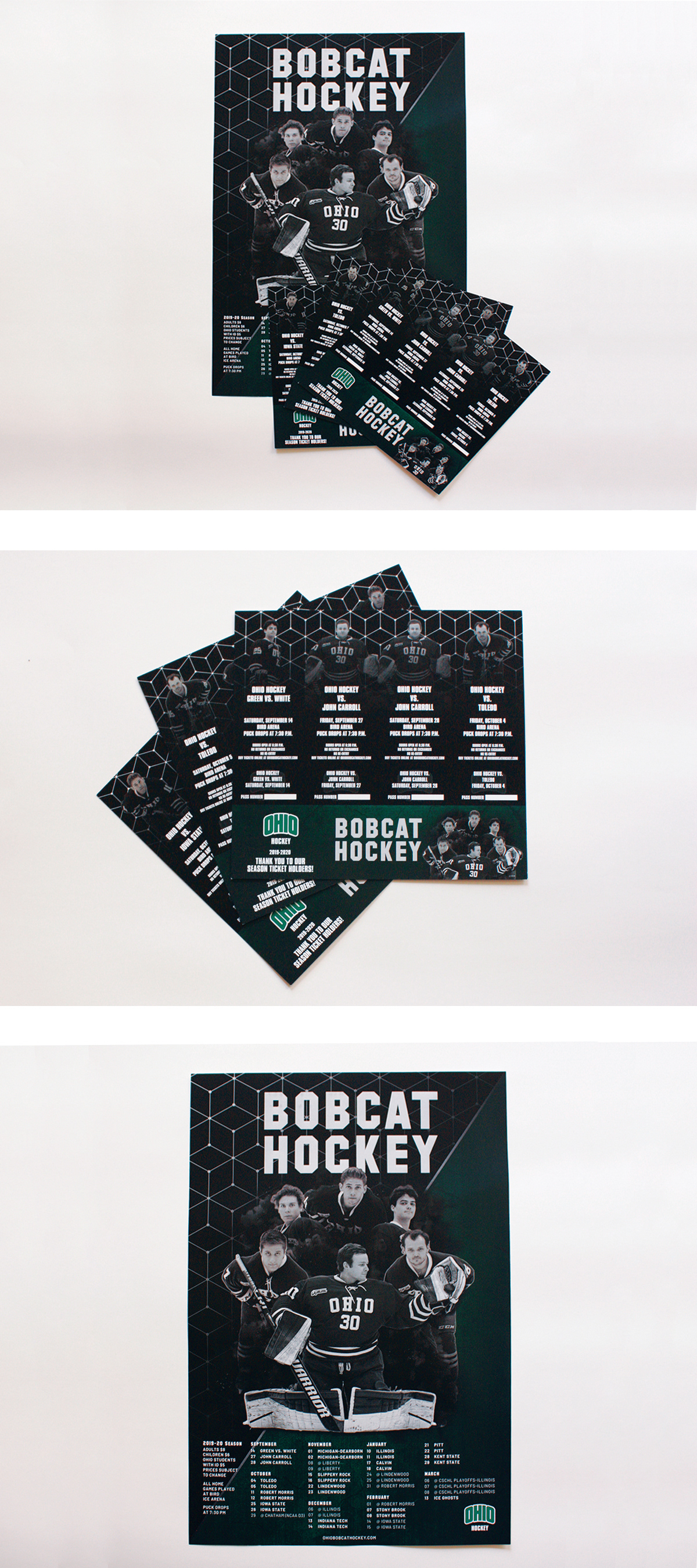 Refresh on the Bobcat Hockey promotional materials including: posters, schedule, and season tickets.