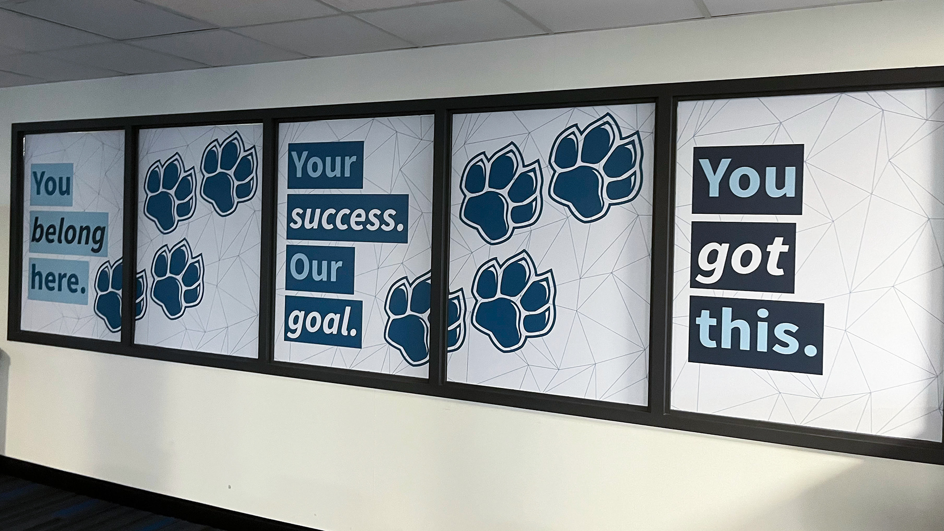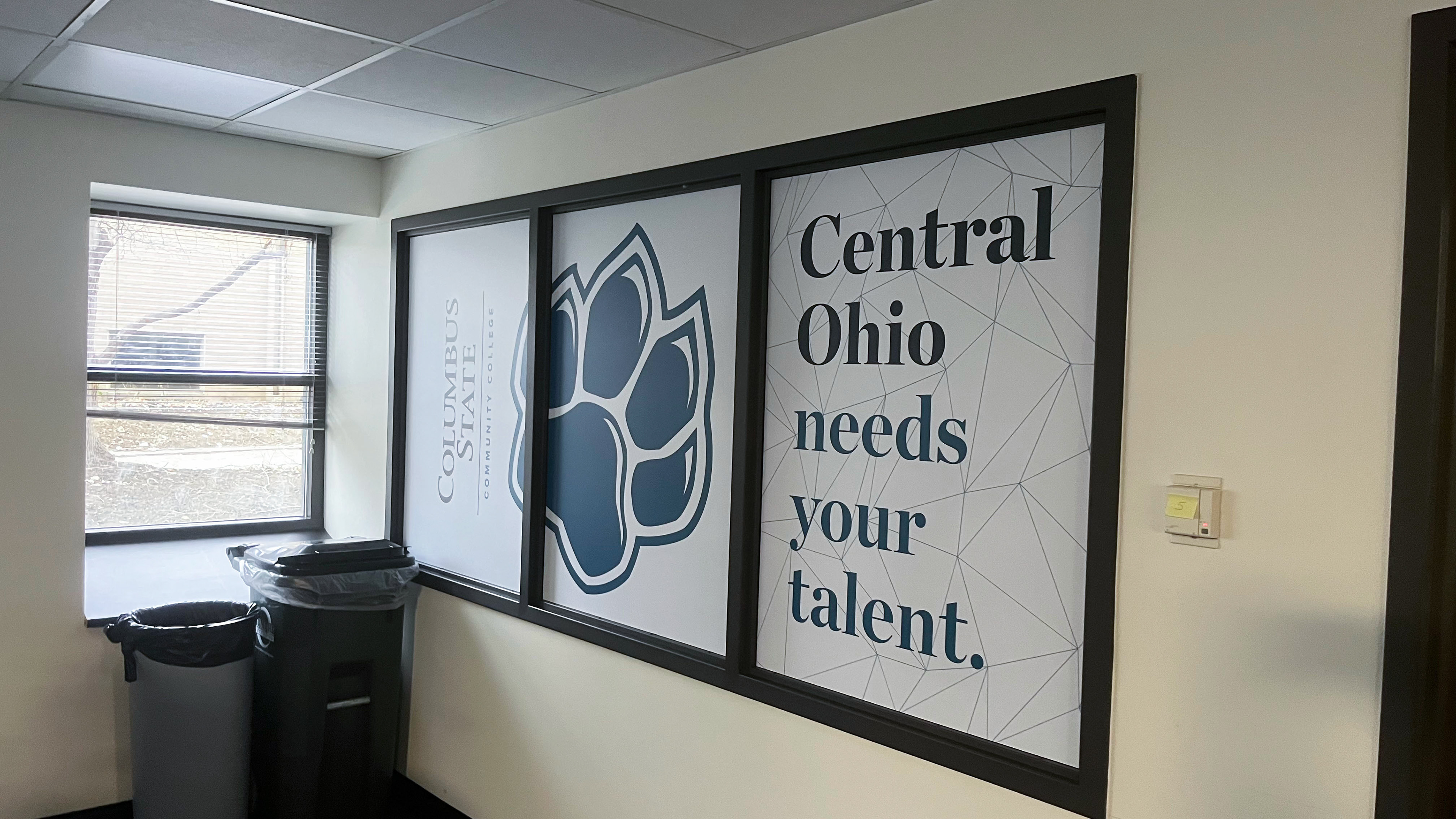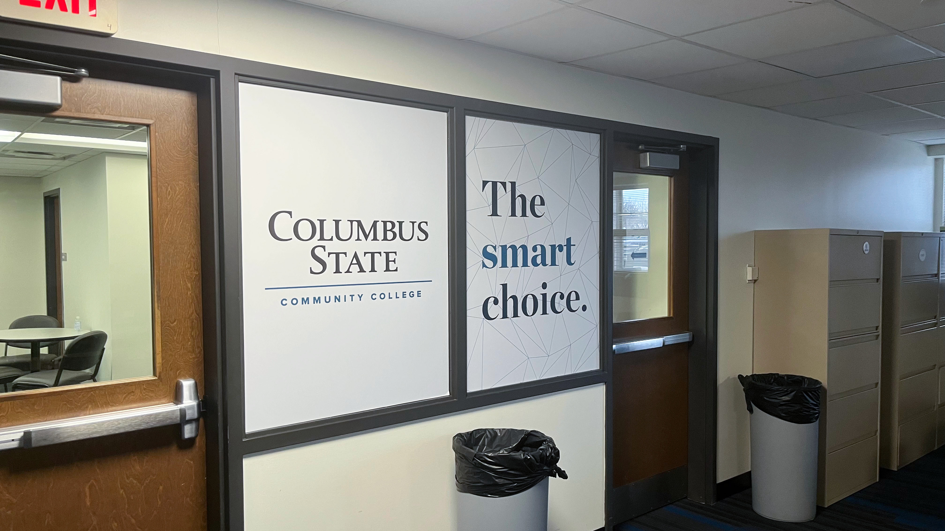 AQ002 was the name lovingly placed on an Admissions space with a variety of uses, including where students start their journey with Columbus State for testing, paperwork, and many other housekeeping items. The marketing team with leadership from our content teams on the project workshopped names and finally landed on CState Starting Point. Located on a lower-level building on campus, we needed signage to direct students and a bright design to account for lack of sunlight. (2025)