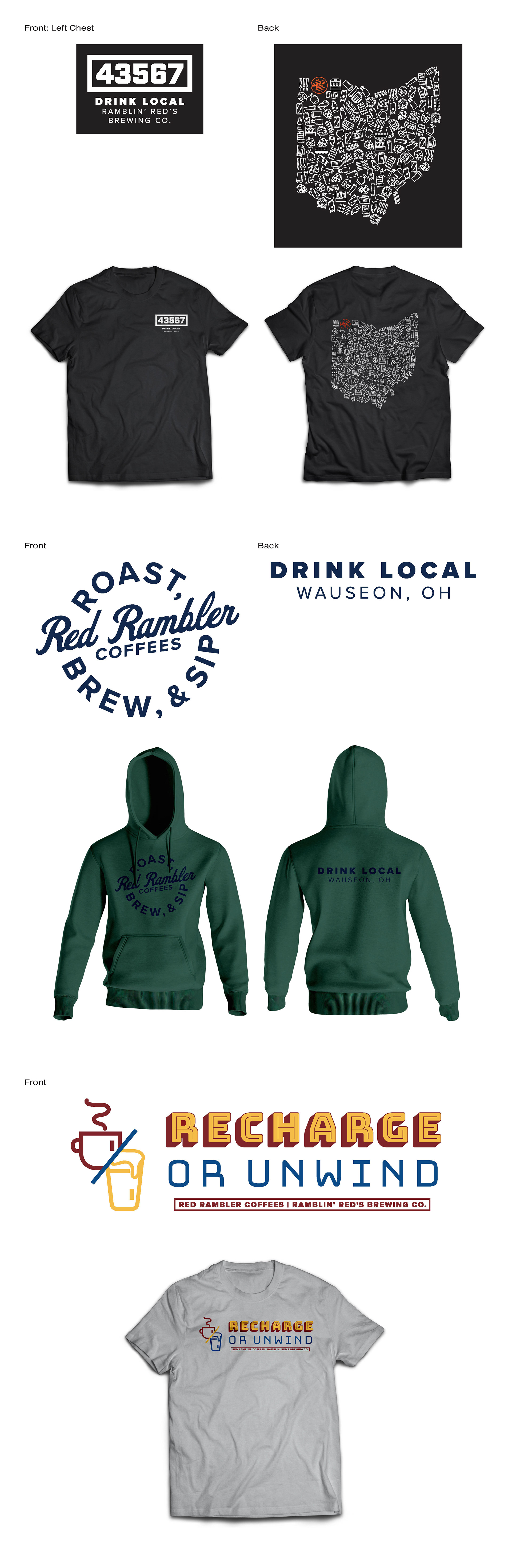 Between 2020 and 2021, I freelanced with Red Rambler Coffees and Ramblin' Red's Brewing Company, creating flyers for events, new location signage, menus, and merchandise. (2020)
